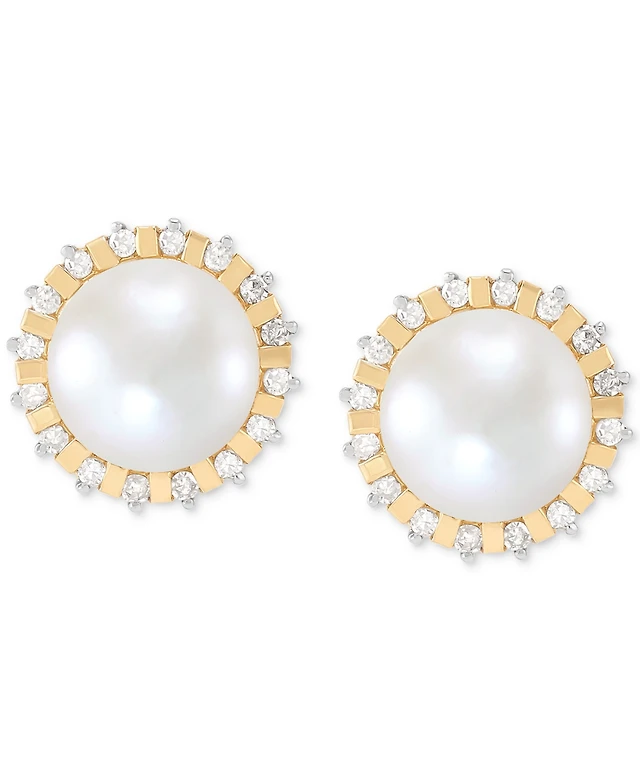 Cultured Freshwater Pearl (8mm) & Diamond (1/8 ct. t.w.) Stud Earrings in 14k Gold