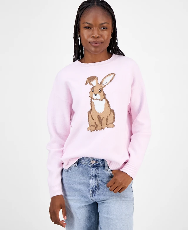 Hooked Up by Iot Juniors' Mossy Bunny Crewneck Sweater