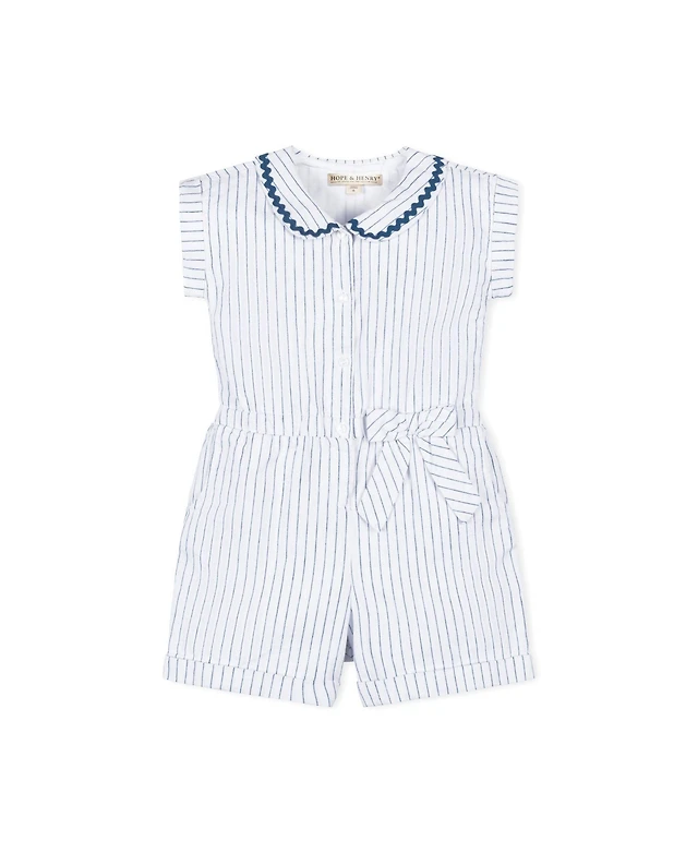 Hope & Henry Girls' Linen Peter Pan Collar Button Front Romper, Toddler