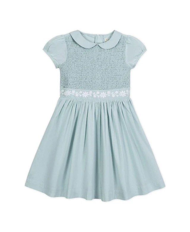 Hope & Henry Girls' Organic Puff Sleeve Smocked Party Dress with Peter Pan Collar - Little Kid, Big Kid