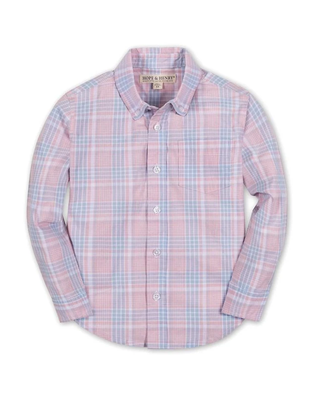Unisex Hope & Henry Boys' Organic Stretch Poplin Long Sleeve Button Down Shirt