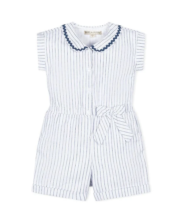 Unisex Hope & Henry Girls' Linen Peter Pan Collar Button Front Romper