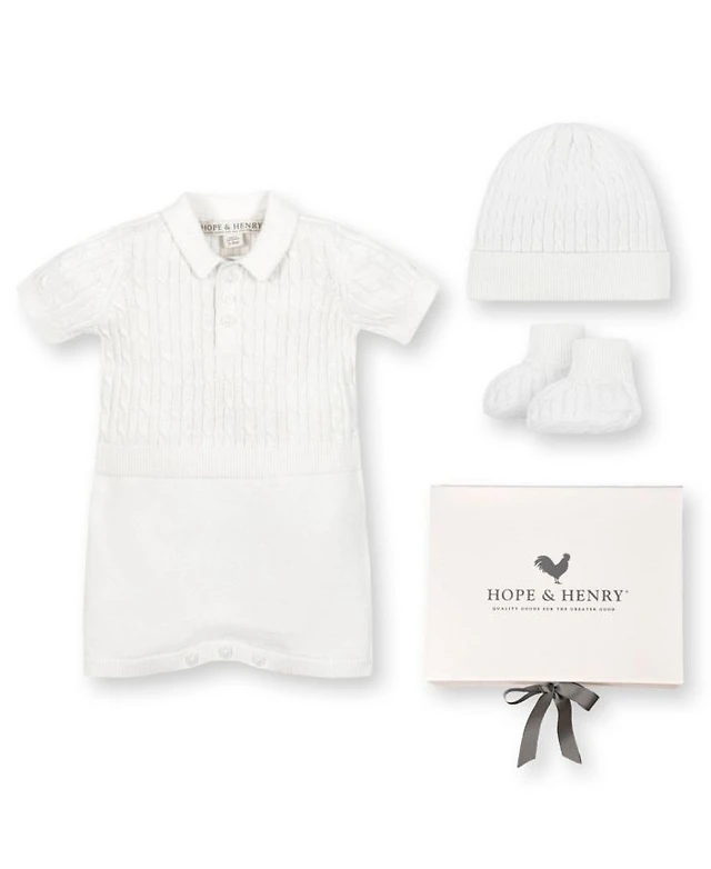 Unisex 4 Piece Cable Shortie Romper, Beanie, & Bootie Boxed Gift Set - Baby