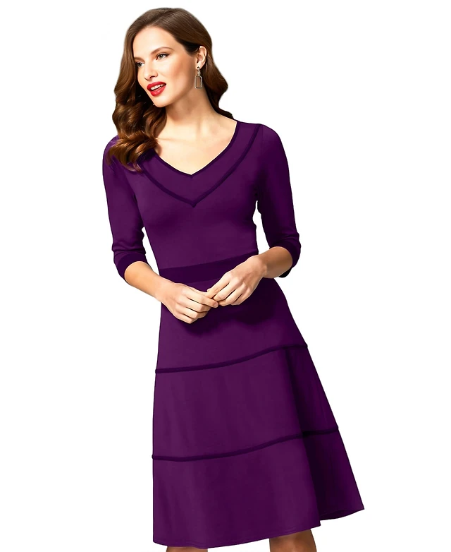 HotSquash London Women's V Neck Fit and Flare Dress with 3/4 Sleeves