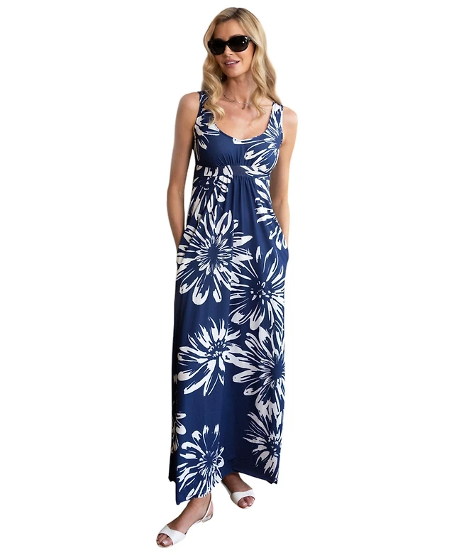 Hotsquash London Women's V-Neck Maxi Dress with Short Sleeves