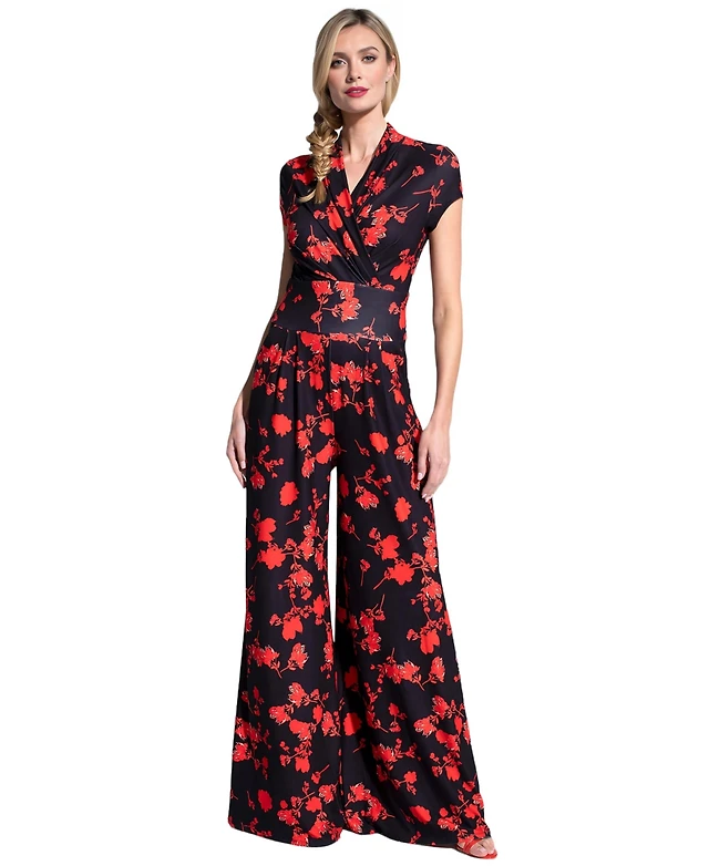 HotSquash London Women's Faux-Wrap Wide Leg Jumpsuit