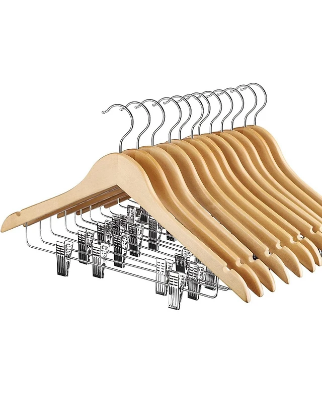 Wooden Suit & Skirt Hangers with Adjustable Clips Natural 12 Pack
