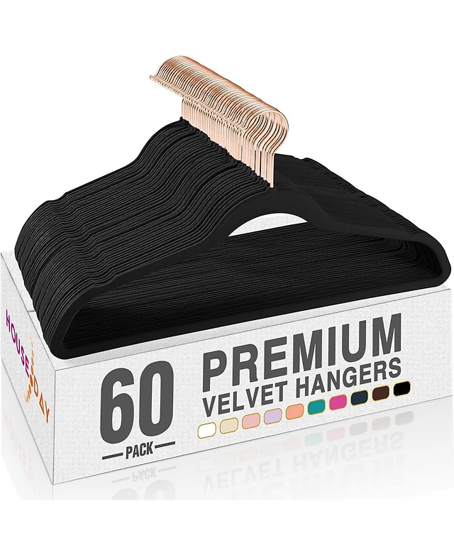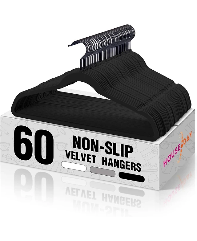 17.5 Inch Black Hook Velvet Hangers 60 Pack