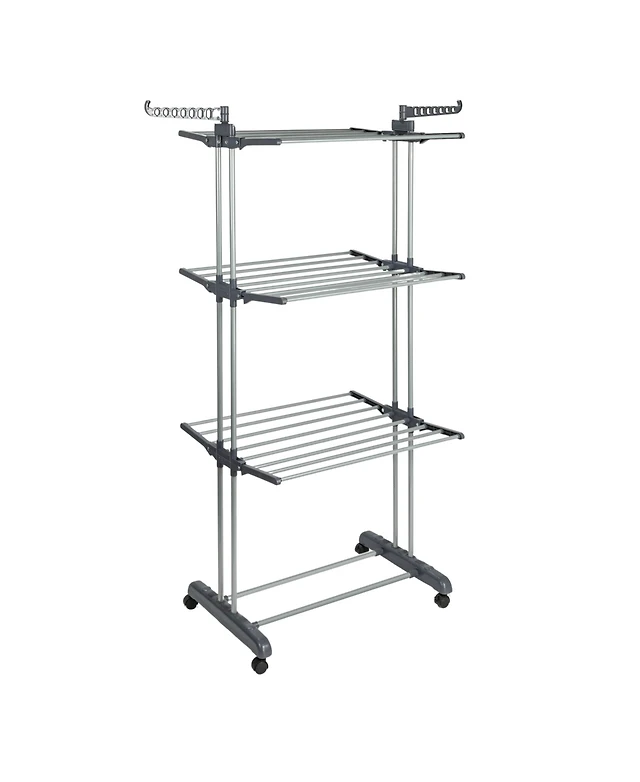 Household Essentials Multi Tier Stainless Steel Laundry Drying Rack with T Bar and Two Side Wings, Silver