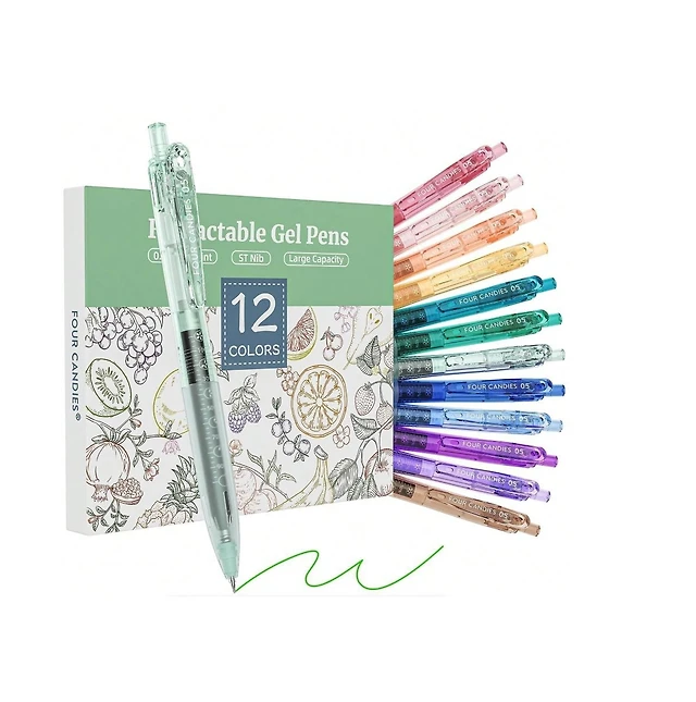 Htutwoo Four Candies Quick Dry Ink Colored Pens Set, 12 Colors Retractable Gel Pens, Colored Gel Pens for Office, School & Home Back To School