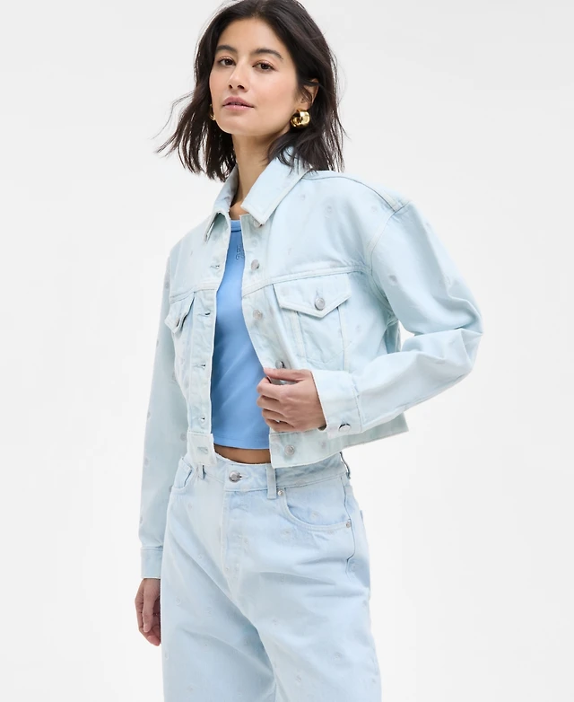 Hugo Women's Cotton Relaxed-Fit Cropped Denim Jacket
