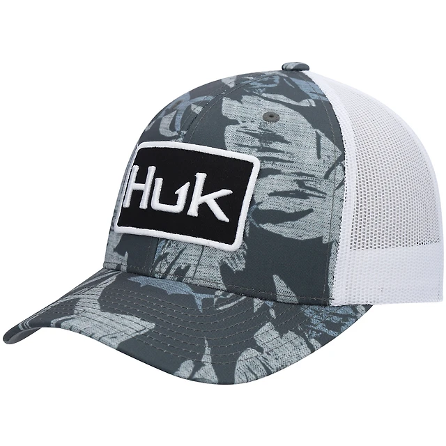 Men's Huk Graphite Ocean Palm Trucker Snapback Hat