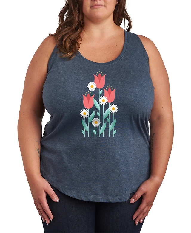 Hybrid Apparel Plus Pastel Dandelions Graphic Tank Top