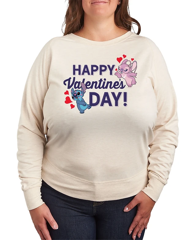 Hybrid Apparel Plus Stitch Happy Valentine's Day Crew Neck T-Shirt
