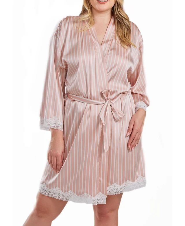 iCollection Tobey Plus Modal Hearts Robe Trimmed Contrast Lace with Self Tie Sash