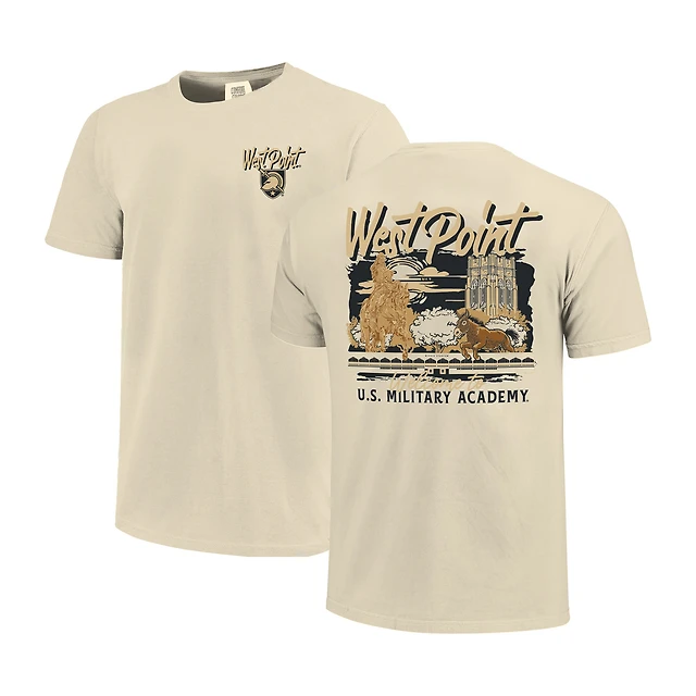 Men's Image One Natural Army Black Knights Comfort Colors Hand-Drawn Campus Stack T-Shirt