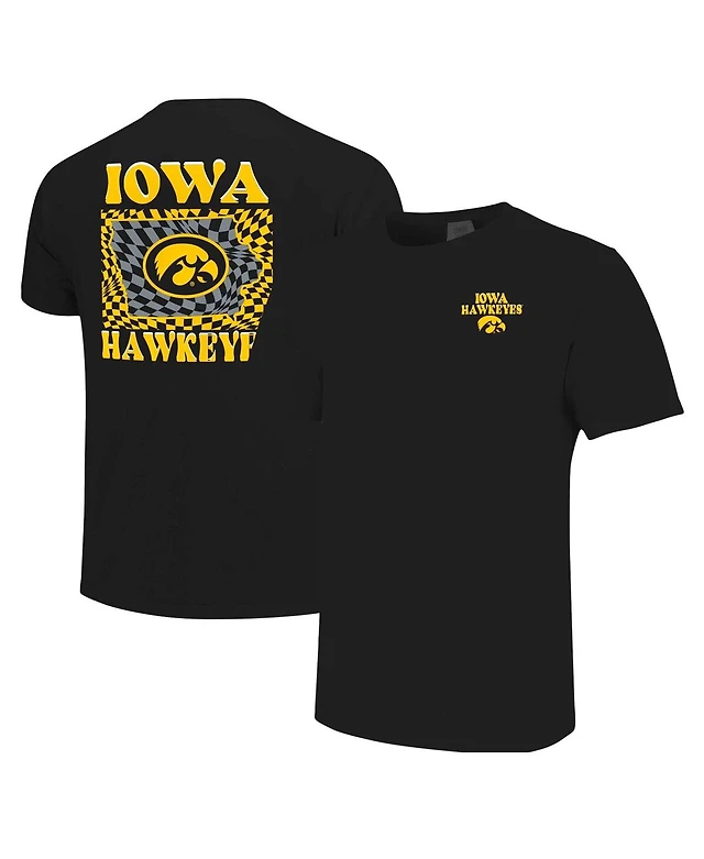 Image One Women's Black Iowa Hawkeyes Comfort Colors Checkered Mascot T-Shirt