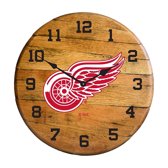 Imperial Detroit Red Wings Oak Barrel Clock