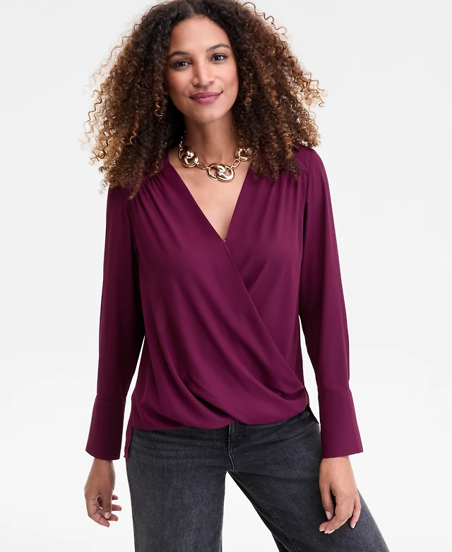 I.n.c. International Concepts Women's Surplice Long-Sleeve Blouse, Exclusively at Macy's