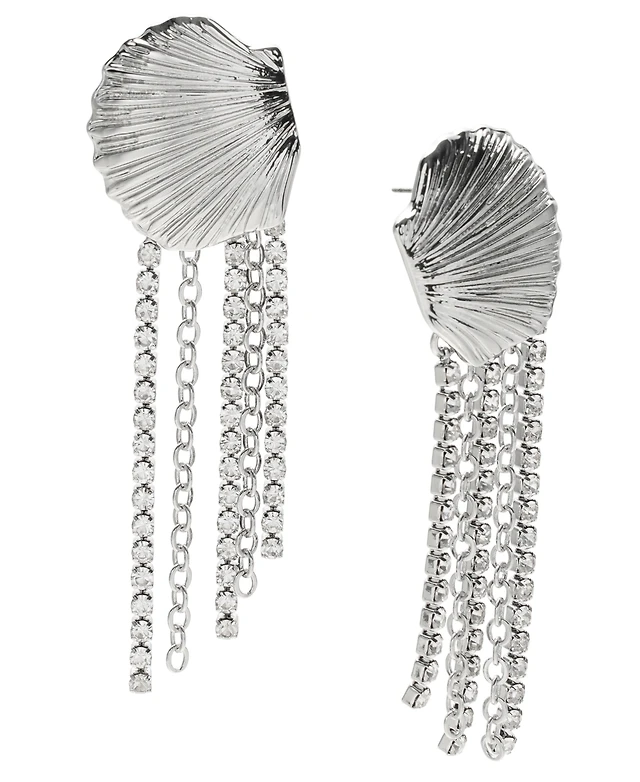 I.n.c. International Concepts Rhodium-Plated Shell & Rhinestone Fringe Statement Earrings, Exclusively at Macy's