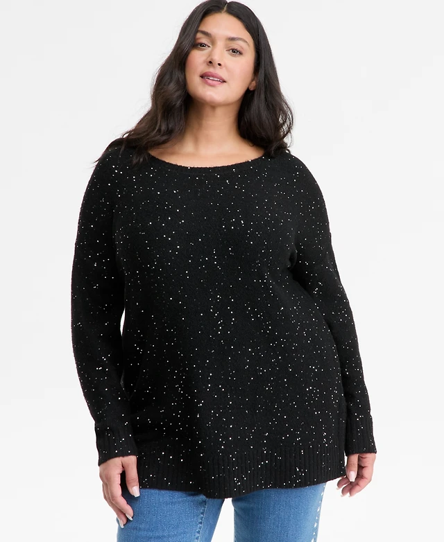 I.n.c. International Concepts Plus Roving Sequin Boat-Neck Tunic Sweater, Macy's Exclusive