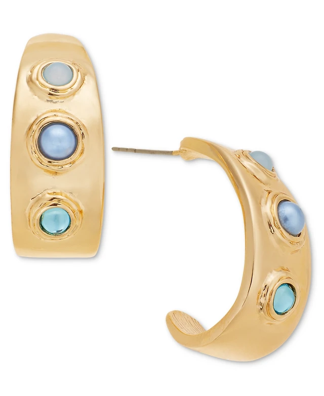 I.n.c. International Concepts Gold-Tone Stone & Imitation Pearl J-Hoop Earrings, Exclusively at Macy's