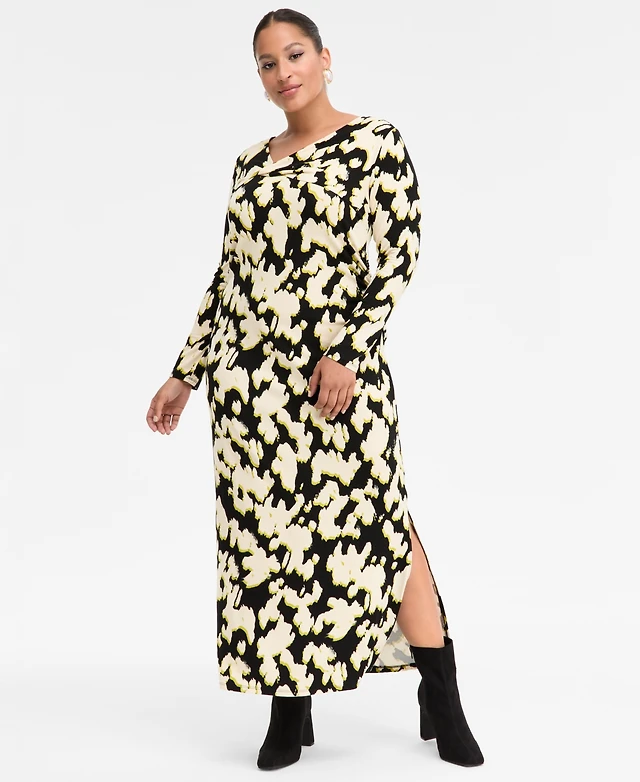 I.n.c. International Concepts Plus Printed Crossover-Neck Maxi Dress, Macy's Exclusive