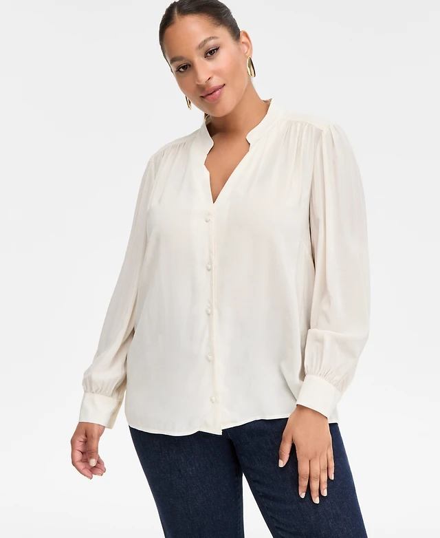 I.n.c. International Concepts Plus Blouson-Sleeve Button-Front Shirt, Macy's Exclusive