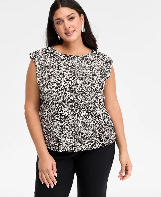 I.n.c. International Concepts Plus Size Printed Boat Neck Cap Sleeve Top, Macy's Exclusive