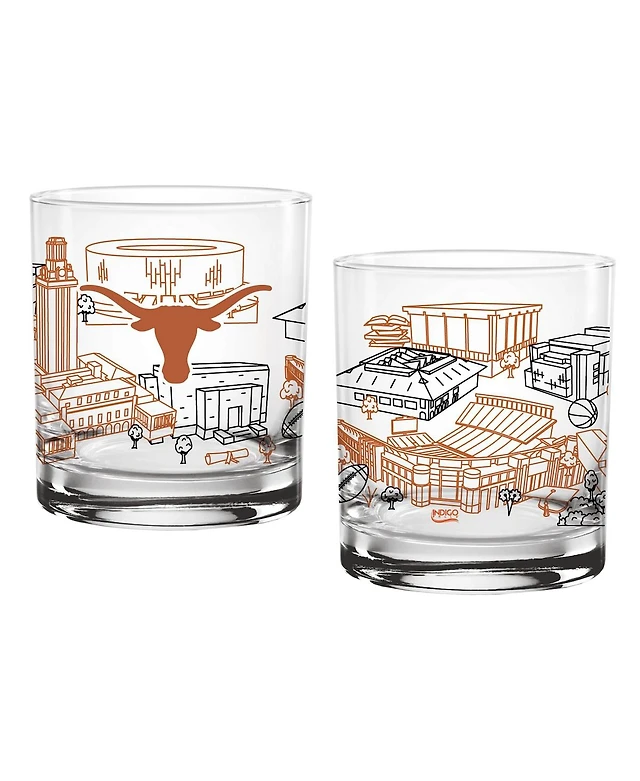Indigo Falls Texas Longhorns Campus Line Art Glasses, Set of Two 14oz.