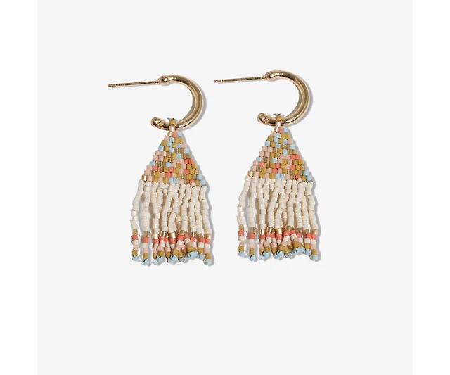 Ink + Alloy Ink+Alloy Women's James Mini Gold Hoop Horizontal Stripes Beaded Fringe Earrings Muted