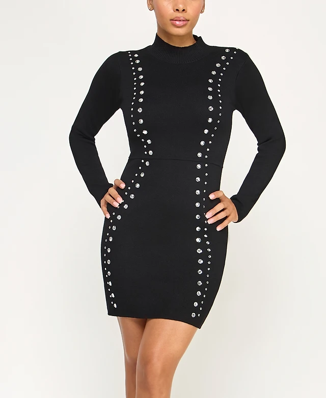 Invitee Juniors' Mock Neck Studded Sweater Dress
