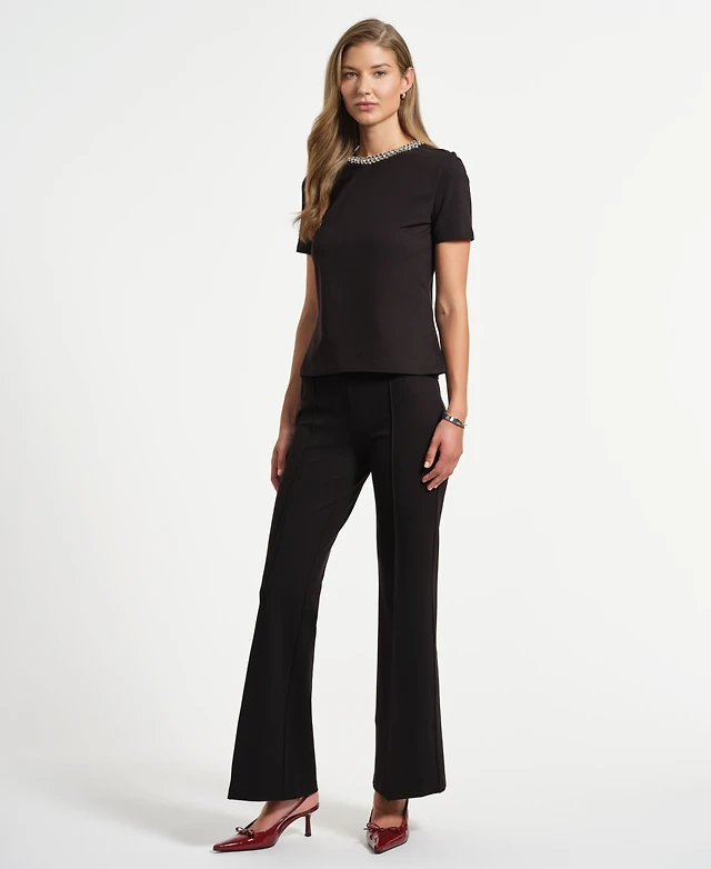 Isaac Mizrahi Women's Ponte Flare Mid Rise Pants