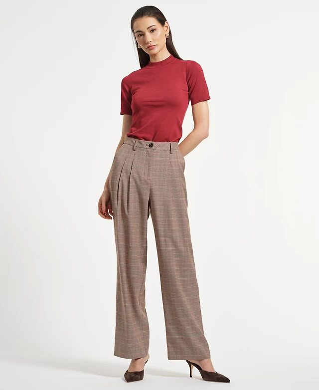 Isaac Mizrahi Women's Wide Leg Belted Plaid Pants