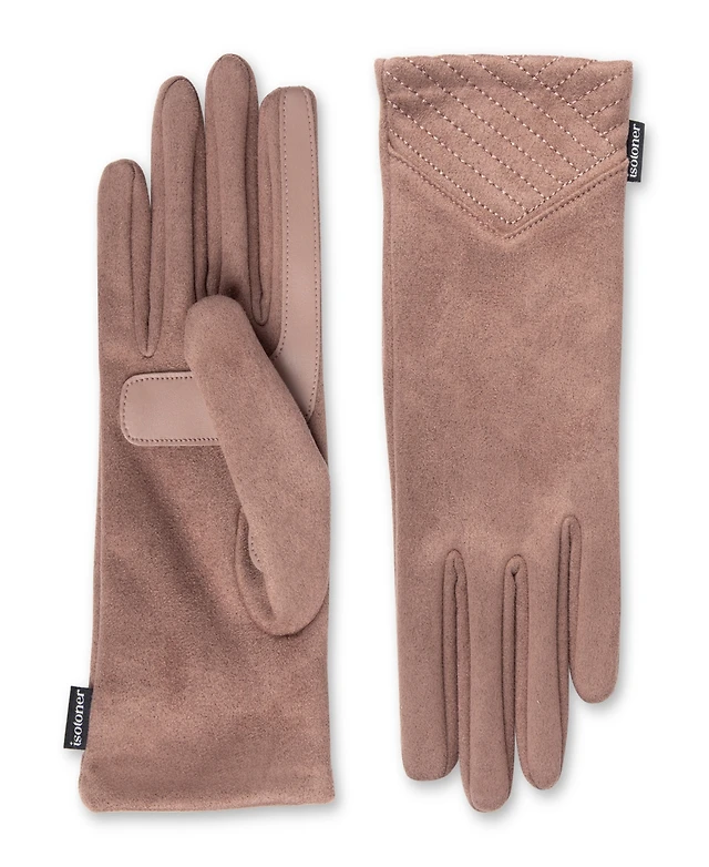 Isotoner Women's Water Repellent Stretch Microsuede Gloves with Quilted Chevron Wrist