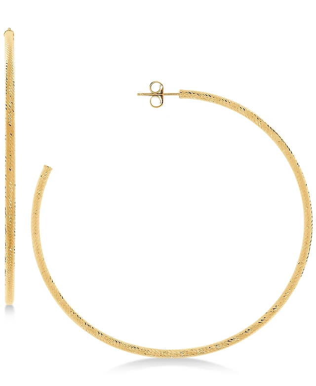 Italian Gold Medium Textured Hoop Earrings in 14k Gold