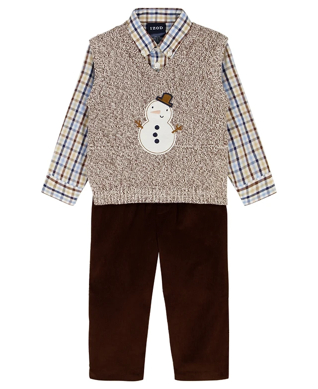 Izod Baby Boys 3-Piece Snowman Sweater Vest, Shirt and Pants Set