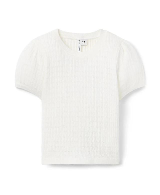 Janie and Jack Girls' Pointelle Puff Sleeve Top - Baby, Little Kid