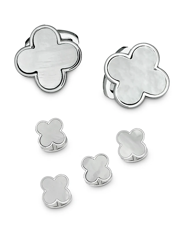 Jan Leslie Sterling Silver & Mother-of-Pearl Clover Stud Set