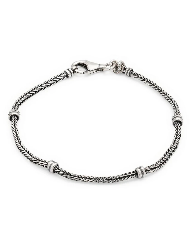 Matte Boswana Agate & Burnished Silver Beaded Bracelet