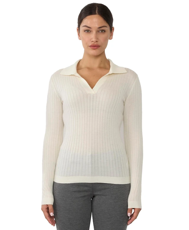 Jennie Liu Women's Tissue Weight Cashmere Silk Rib-knit Johnny Collar Polo Sweater