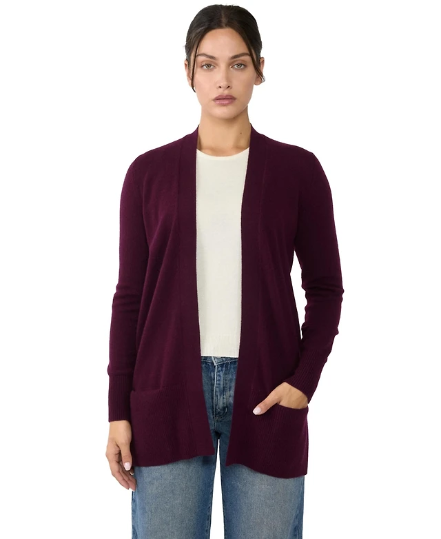 Jennie Liu Women's 100% Cashmere Open Cardigan Sweater | Long Sweaters