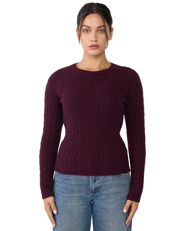Jennie Liu Women's 100% Cashmere Cable-knit Long Sleeve Pullover Crew Neck Sweater