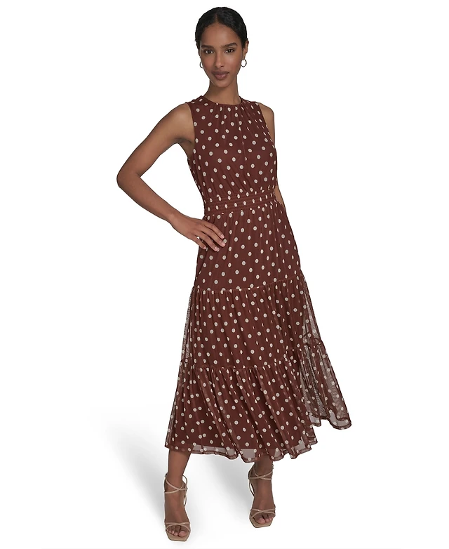 Jessica Howard Petite Sleeveless Mesh Midi Dress