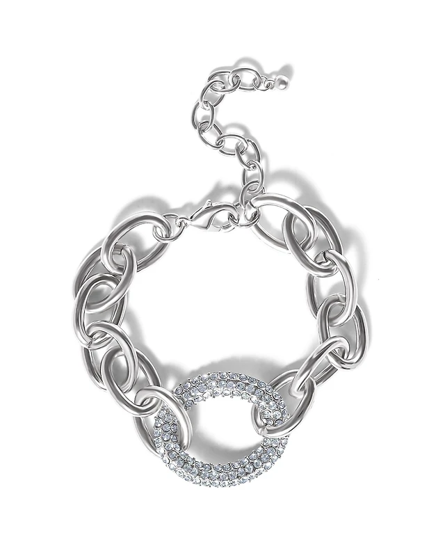 Jessica Simpson Silver-Tone Pave Oval Link Bracelet