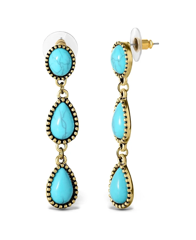 Jessica Simpson Women's Turquoise Stone Feather Drop Earrings