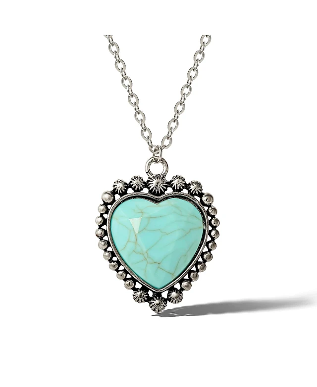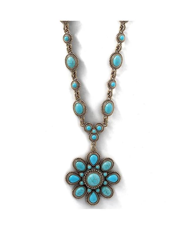 Jessica Simpson Women's Large Turquoise Stone Flower Necklace Silver or Gold Tone