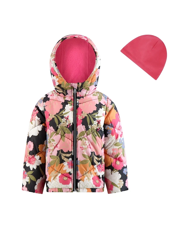 Jessica Simpson Girls Fashion Floral Print Puffer Jacket With Hat