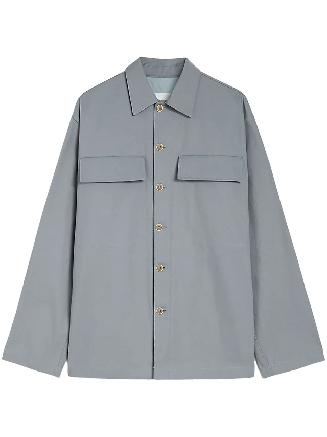 Wool Canvas Shirt With Beads Volcanic Glass Grey
