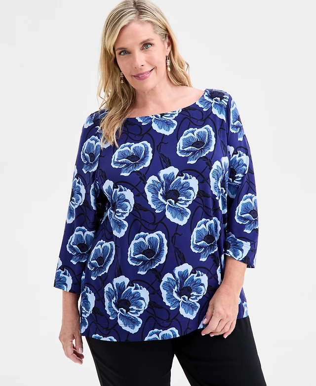 Jm Collection Women's Printed 3/4-Sleeve Top, Exclusively at Macy's